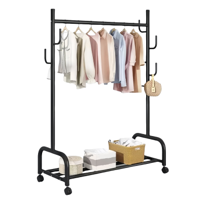 敬平简易衣架落地家用卧室挂衣服置物架网红衣帽架可移动阳台晾衣架子 树杈双层[黑色]