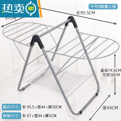 敬平迷你落地折叠晾衣架简易小型婴儿家用阳台晾挂衣服飘窗晒衣架 [中号B款]黑色