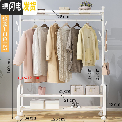 三维工匠晾衣架落地折叠室内单杆式晒衣架卧室挂衣架家用简易凉衣服 旗舰升级款-白125[三层置物架+双侧钩+万向晾衣架配件