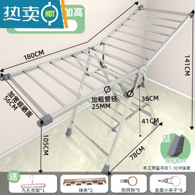 敬平不锈钢晾衣架落地折叠卧室内阳台凉衣架家用婴儿晾衣架晒被子器 ❤️特粗特宽星耀1.8米大三层[25mm方管]⭐新隐形轮