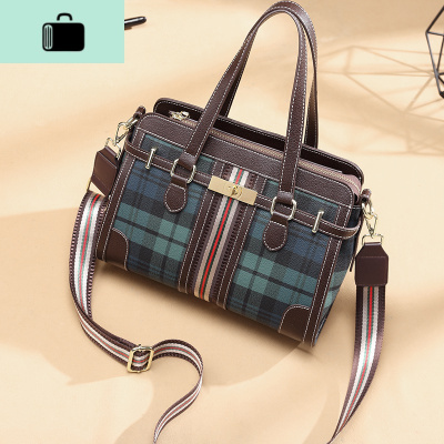 港风铂金包2020新款潮百搭斜挎包大气大容量格子女包手提包单肩包NEW LAKE 绿色配两条斜挎带