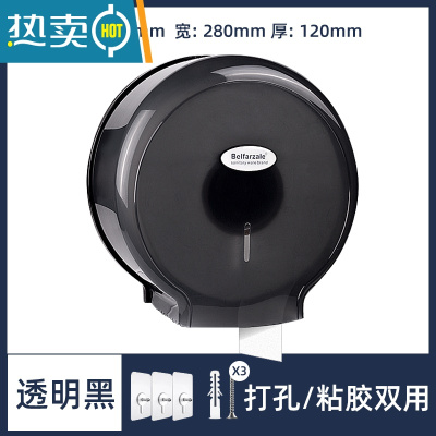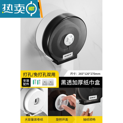 敬平酒店卷纸筒纸巾盒厕所公共卫生间大盘厕纸盒免打孔大卷纸盒壁挂式 √[推荐]透明黑(免打孔)