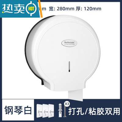 敬平酒店卷纸筒纸巾盒厕所公共卫生间大盘厕纸盒免打孔大卷纸盒壁挂式 钢琴白+胶+3卷纸