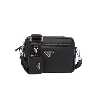 普拉达(PRADA)小容量牛皮压花徽标男士斜挎包多功能内袋通勤手提