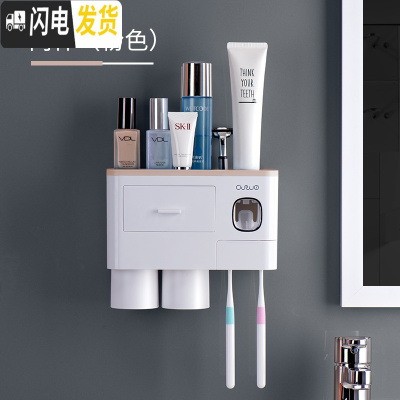 三维工匠牙刷置物架壁挂免打孔牙刷架牙膏壁挂式牙缸架卫生间洗漱杯置物架