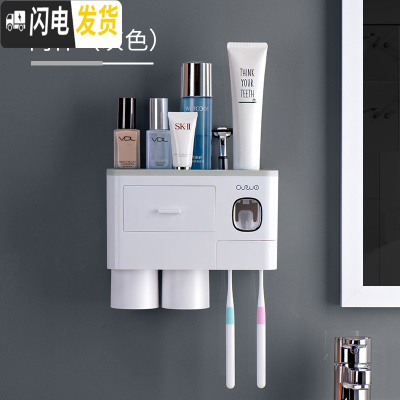 三维工匠卫生间吸壁式牙刷架壁挂洗漱架牙刷筒牙刷杯牙刷置物架套装收纳架 洗漱套装(灰白)