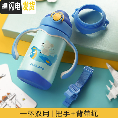 三维工匠儿童保温杯宝宝吸管杯婴儿喝水杯女学饮杯带吸管水壶两用外出 蓝色400(316内胆)