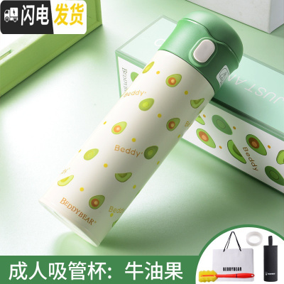 三维工匠保温杯大人带吸管孕产妇牛油果吸管式水杯少女学生简约清新 成人杯—牛油果(玩潮款)