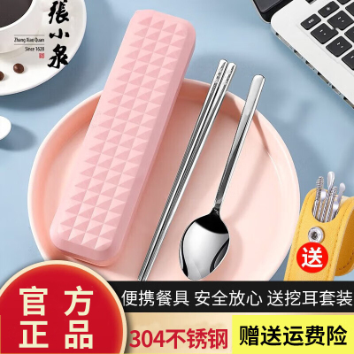 张小泉餐具便携套装304不锈钢1双筷子勺子带收纳盒上班外出旅行餐具单人 女士知性粉 C41840100