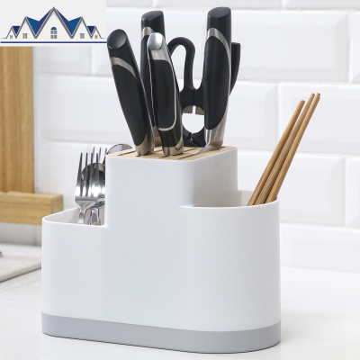 北欧木盖筷子筒刀架厨房筷子沥水置物架勺子收纳盒刀具塑料收纳架 三维工匠