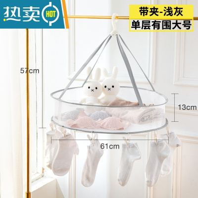 敬平晒袜子器晾袜子架晾衣服多夹子圆内衣架多功能晾儿童婴儿晒衣夹 26# 12夹单层有围大号-浅灰