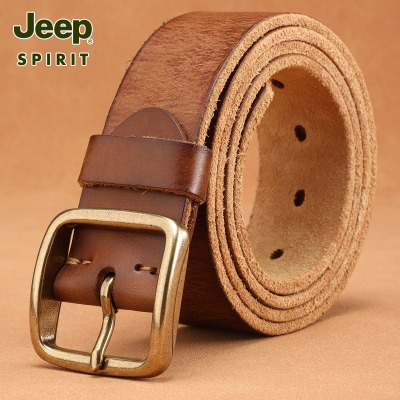Jeep吉普皮带男真皮针扣复古青年裤腰带休闲头层牛皮铜扣手工腰带