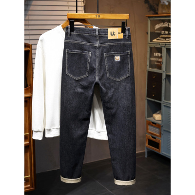 北方加绒裤子男高级感弹性商务保暖加厚防寒直筒休闲牛仔裤男