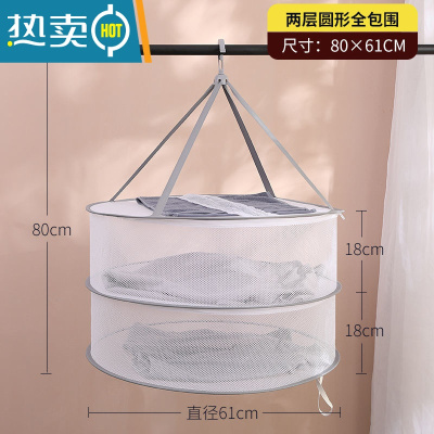 敬平晾衣网晒袜子器晾衣篮晾晒网衣服平铺的网兜家用毛衣专用晾衣架 防风设计61CM双层封闭式[圆形灰色]晒衣篮