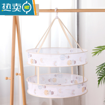 敬平家用新款折叠晒鱼晒干菜鱼虾防蝇袜子晒衣服网兜晒东西多功能器 双层封闭直径60厘米晒衣篮