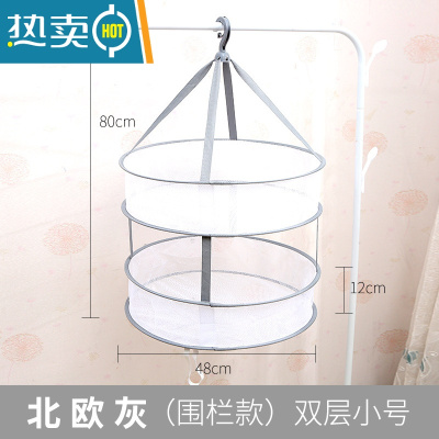 敬平多功能晒衣网晒袜子内衣晒衣篮双层便携可折叠衣架家用旅行晾衣网 直径48cm两层 升级加厚结实款