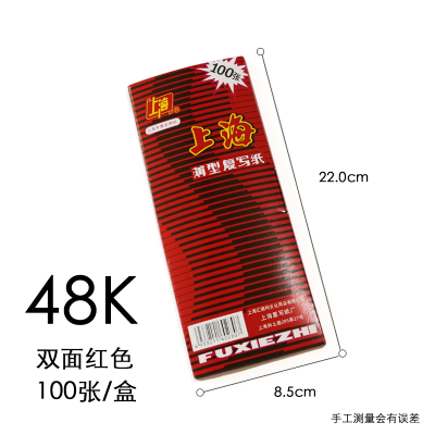 加长48K双面红色100张 16k开黑色复写纸8K开财务填写单据专用32k开透蓝纸48k开薄型复刻纸过底纸100张印蓝纸
