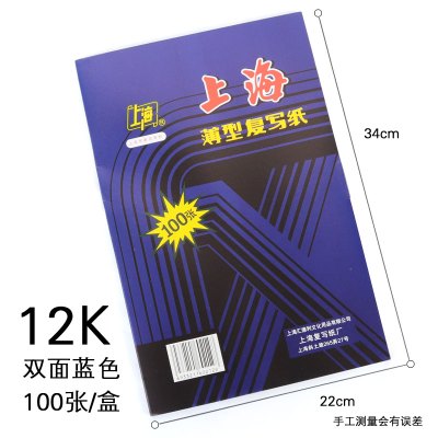 12K单面蓝色100张 16k开黑色复写纸8K开财务填写单据专用32k开透蓝纸48k开薄型复刻纸过底纸100张印蓝纸