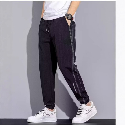 冰丝垂感美式条纹休闲裤男潮流束脚宽松大码长裤