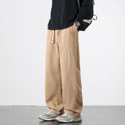 |秋季新款宽松直筒长裤男美式潮牌拼接松紧腰纯棉休闲裤