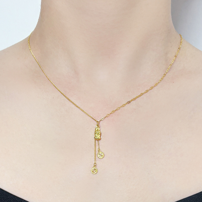 北京黄金 足银 999 镶石胖福串圈套链 国风招财银项链生日送礼礼物
