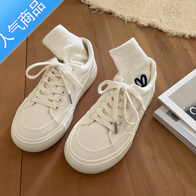 SUNTEK帆布鞋女学生韩版2023春季新款百搭休闲透气小白鞋平底原宿饼干鞋