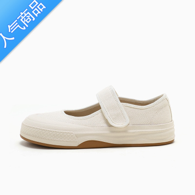 SUNTEKMB 魔术贴玛丽珍帆布鞋女2023年春夏新款透气厚底板鞋浅口小白鞋