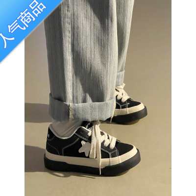 SUNTEK百搭小黑鞋女鞋新款2023时尚气质黑色帆布鞋chic泫雅风鞋子女