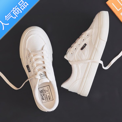 SUNTEK小白鞋女ins潮百搭小众日系复古板鞋2023新款薄款饼干帆布鞋