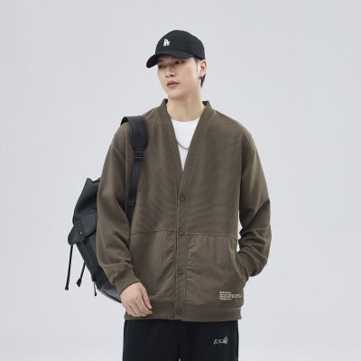 |卫衣男士开衫斜纹春秋款拼接外套V领简约百搭外套男装