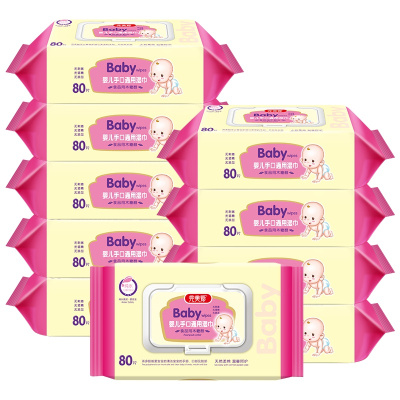 完美爱新生儿婴儿幼儿宝宝手口专用柔湿巾湿纸巾80抽*10包共800抽盖巾装大包家庭量贩装(卡通)