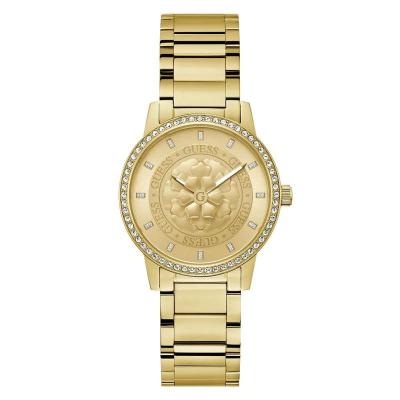 GUESS女士石英镀金复古花朵腕表米防水 recycled钢材质