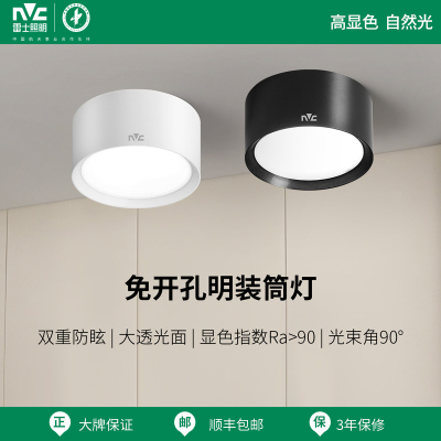 雷士照明LED筒灯明装免开孔天花灯圆形高显防眩客厅过道灯服装店走廊吸顶灯