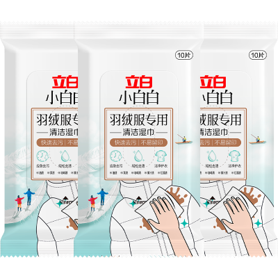 立白小白白羽绒服专用清洁湿巾10片*3包应急去污洁净护衣温和不伤手