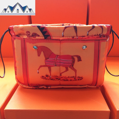 橙色骏马原版丝绸h家收纳袋 内胆包 收纳小包 整理化妆包包中包 三维工匠收纳包