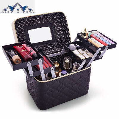 化妆包大容量多功能简约便携护肤品收纳盒网红可爱多层化妆箱手提 三维工匠收纳包