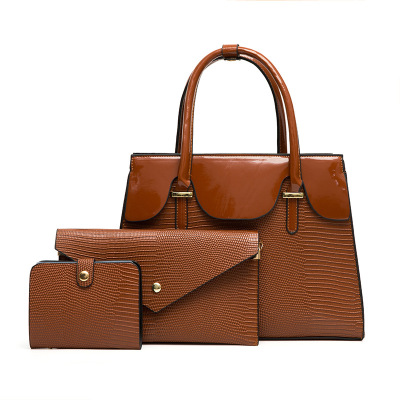 2022新款欧美复古女包单肩手提斜挎包漆皮三件套子母包女包