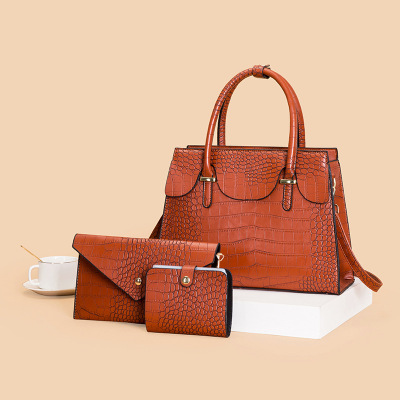 欧美时尚潮流三件套子母包2022新款鳄鱼纹单肩手提包质感斜挎女
