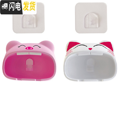 三维工匠创意可爱卡通情侣儿童牙刷架免打孔吸壁式卫生间置物架子牙刷挂架 [2个装]粉色+白色白耳朵