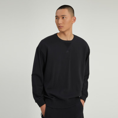 阿迪达斯 (adidas)卫衣男装 2023春季新款时尚运动服健身训练休闲宽松圆领套头衫 IC9807 黑色棉质/毛圈内