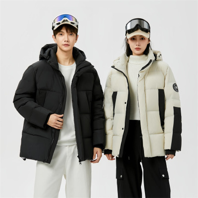 户外运动山系男女同款情侣连帽羽绒服潮牌撞色冬季男士羽绒服