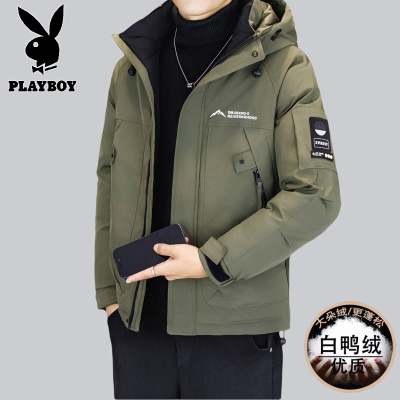 花花公子新款高品质冬季新款户外防寒服三防连帽加绒加厚羽绒服男装夹克外套