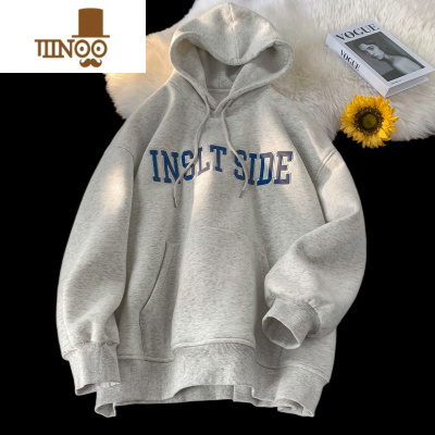 YANXUXOL 日系简约字母刺绣男女休闲连帽卫衣美式复古宽松情侣帽衫