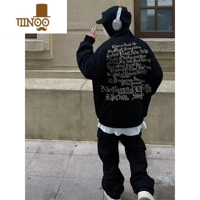 YANXU国潮牌早秋季连帽卫衣男女宽松美式衣服情侣帽衫外套