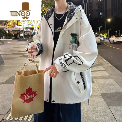 YANXU新款外套男青少年初中生宽松连帽痞帅冲锋衣港风休闲夹克