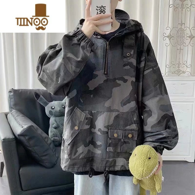 YANXU美式工装迷彩夹克男秋季新款连帽宽松炸街痞帅冲锋衣日系休闲外套
