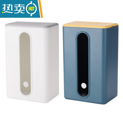 敬平壁挂式抽纸盒家用厨房厕所挂壁纸巾盒客厅免打孔桌下倒挂餐巾收纳 白色+蓝色(送灰色盖子+黄色盖子)