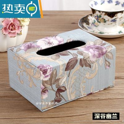 敬平家用客厅茶几餐巾纸抽盒创意面纸盒简约餐厅家居抽纸盒 宝蓝色 壁纸深谷幽兰小号纸巾盒