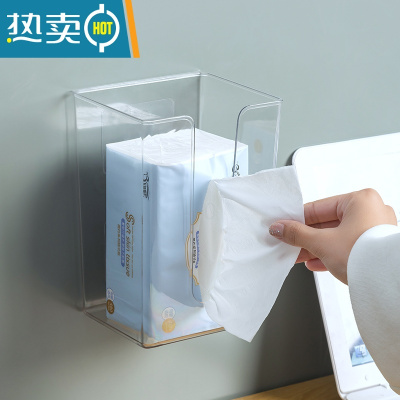 敬平抽纸盒壁挂式洗脸巾收纳盒卫生间透明倒挂厨房厕所贴墙挂壁纸巾盒 透明(收藏加购优先发货)