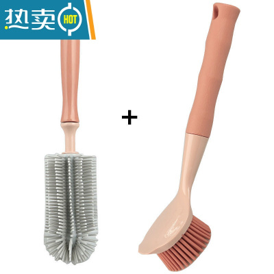 敬平厨房洗碗刷子加粗长柄清洁刷水槽灶台去污软胶不伤锅类硅胶洗锅刷 橘色杯刷+锅刷 硅胶款